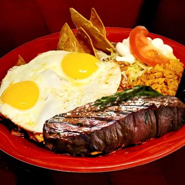 From Mexico City, top Secret Recipe. comes with Beans, and Tortillas.